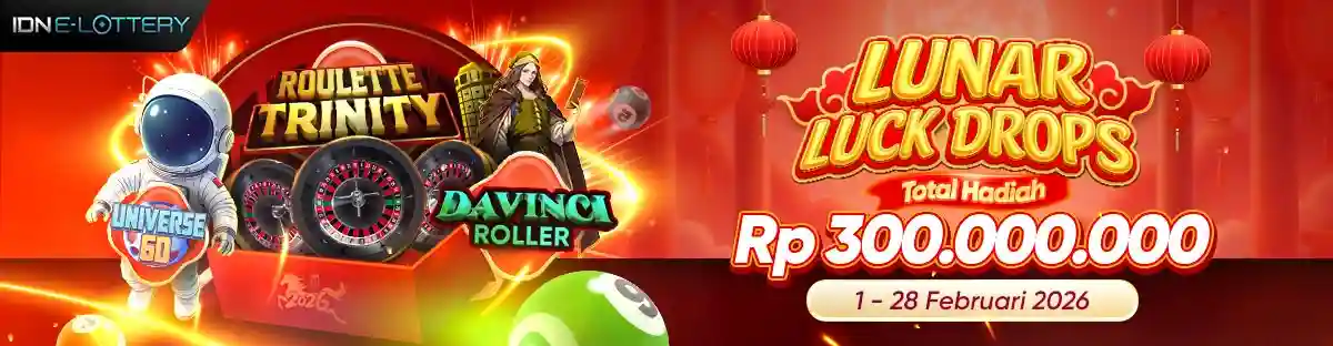 Lunar Luck Drops oleh IDN E-Lottery akan berlangsung mulai 1 Februari 2026 hingga 28 Februari 2026 setiap hari, pukul 00:00 WIB hingga 23:59 WIB. Total hadiah cash drop adalah sebesar Rp 300,000,000 dan akan dibagikan kepada pemain yang beruntung setiap harinya.